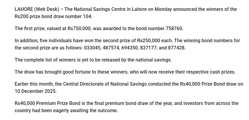 The announcement of the Rs 200 prize bond draw winners has once again created excitement among bond holders. Whether you are a regular investor or a first-time participant, it is important to check results carefully and follow official procedures for prize claims.